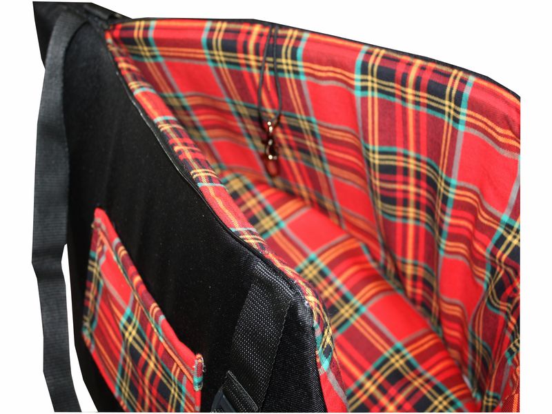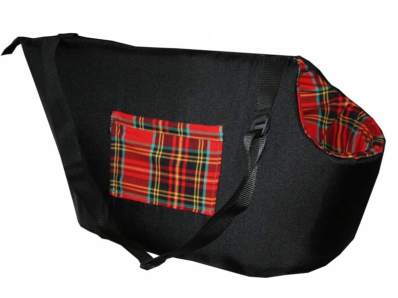 Schicke Basic-Hundetasche in schwarz mit elegantem Schottenmuster-Karo von innen und Außentasche.